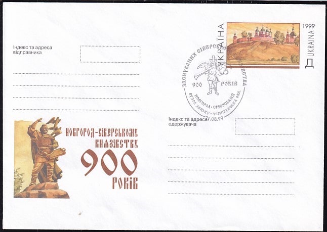 Конверт Украины со спецгашением "900 лет основания г. Новгород-Сиверский", 21.08.99 год