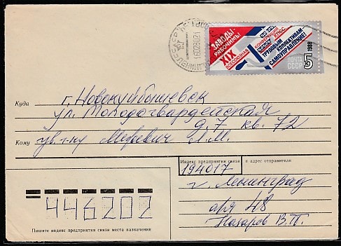 Конверт. XIX Всесоюзная конференция КПСС. "Заводы рабочим!", 1988 год, прошёл почту