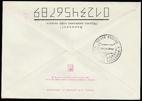 Конверт. Запуск РН "Протон-К" с научным модулем "Природа" для ОС "Мир", гашение 23.04.1996 год, Казахстан, Байконур-3 (+6Ю)