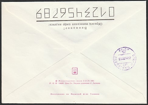 Конверт. Запуск РН "Протон К/ДМ-2" со спутником связи "Радуга 1-3", гашение 05.02.1994 год, к/Байконур (+1Ю)