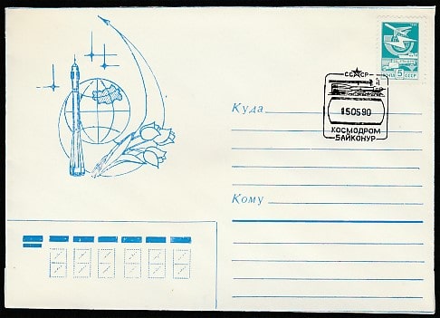 Конверт. Запуск РН "Союз У" со спутником разведки "Космос 2078", гашение 15.05.1990 год, к/Байконур (+4Ю)