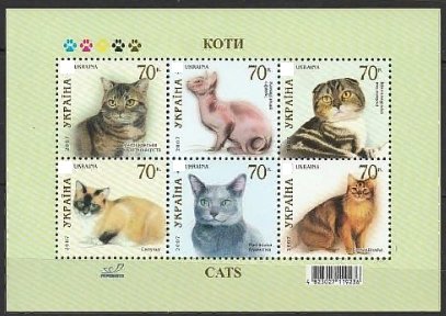 Кошки, Украина 2007 г, блок. (367,446
