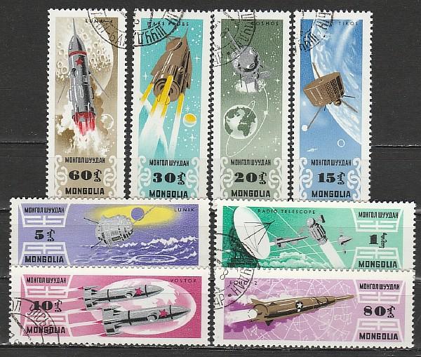 Космос, Монголия 1964 год, 8 гашёных марок