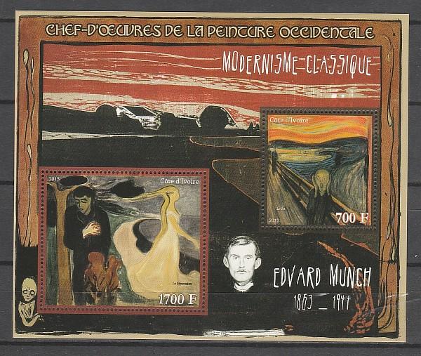 Кот дИвуар 2013 год. Живопись. Эдвард Мунк. Блок.
