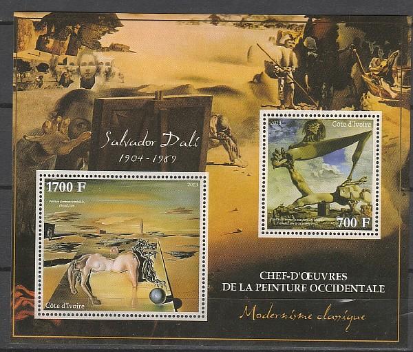 Кот дИвуар 2013 год. Живопись. Сальвадор Дали. Блок.