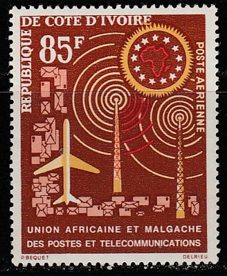 Кот дИвуар 1963 год. Малагасийский почтовый союз, 1 марка (наклейка) (н)