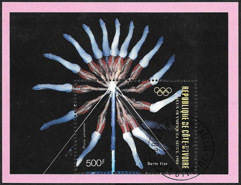Кот дИвуар 1988 год. Гимнастика. Гашеный блок