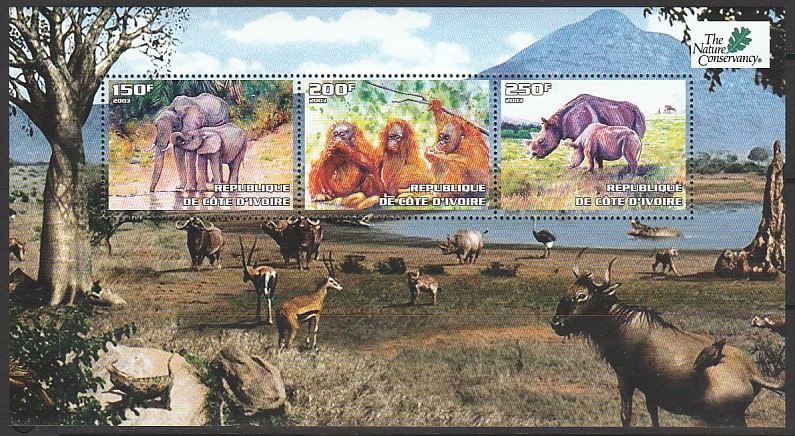 Кот дИвуар 2003 год. Охрана природы. Животные Африки, блок.