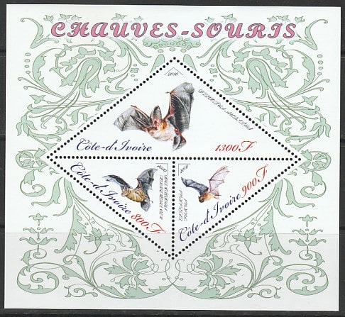 Кот дИвуар 2010 год. Летучие мыши, блок.