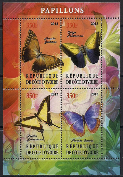 Кот д-ивуар 2013 год. Бабочки. 1 малый лист