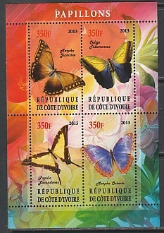 Кот дИвуар 2013 год. Бабочки, малый лист