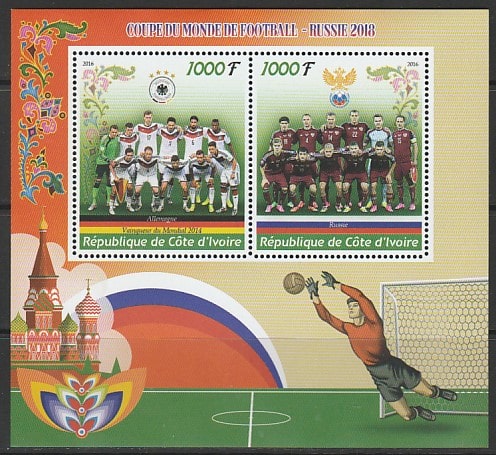 Кот дИвуар 2016 год. Чемпионат мира по футболу в России в 2018 году, малый лист.