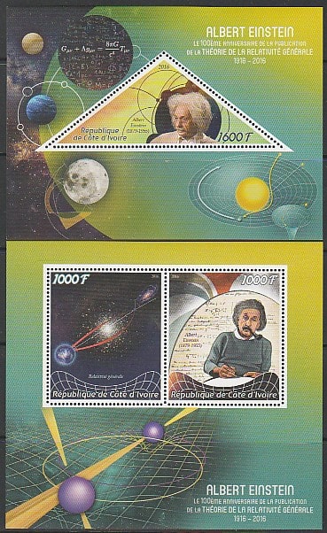 Кот дИвуар 2016 год. Немецкий физик Альберт Эйнштейн, малый лист + блок.