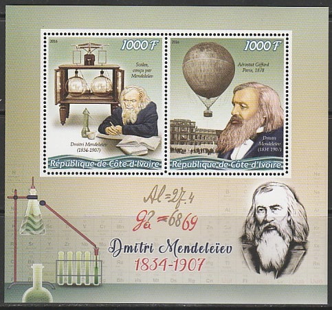 Кот дИвуар 2016 год. Русский учёный Д.И. Менделеев, малый лист.