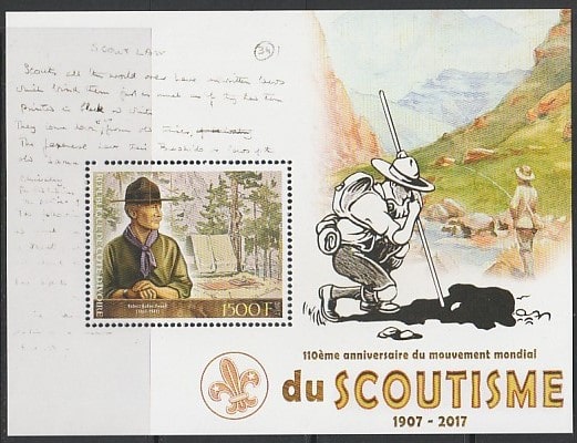Кот дИвуар 2017 год. 110 лет Международному скаутскому движению, блок (II) Сувенирный выпуск.