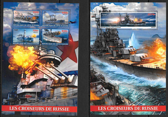 Кот дИвуар 2017 год. Крейсеры России, блок и малый лист