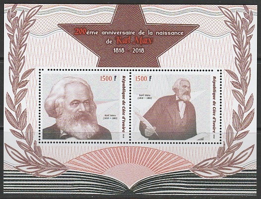 Кот дИвуар 2018 год. 200 лет со дня рождения Карла Маркса, малый лист.