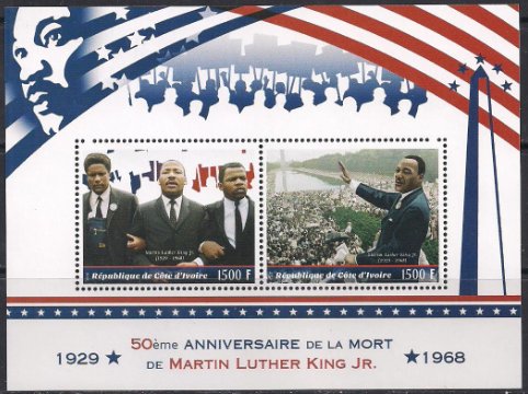 Кот дИвуар 2018 год. 50 лет со дня смерти М.Л. Кинга. Лист