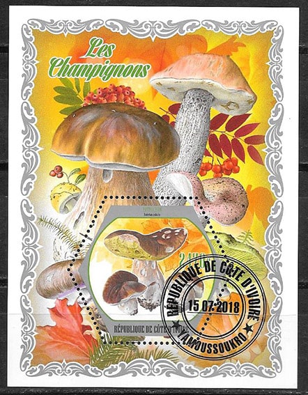 Кот дИвуар 2018 год. Грибы, 1 гашеный блок