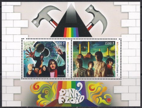 Кот дИвуар 2018 год. Музыкальная группа "Пинк Флойд". Лист Сувенирный выпуск