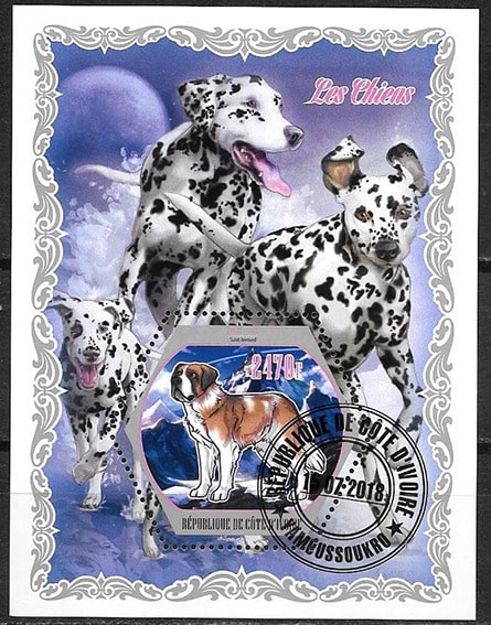 Кот дИвуар 2018 год. Породы собак, 1 гашеный блок