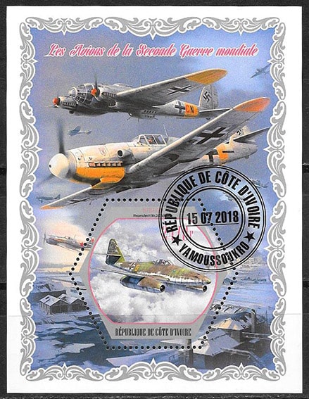 Кот дИвуар 2018 год. Самолеты Второй Мировой войны, 1 гашеный блок