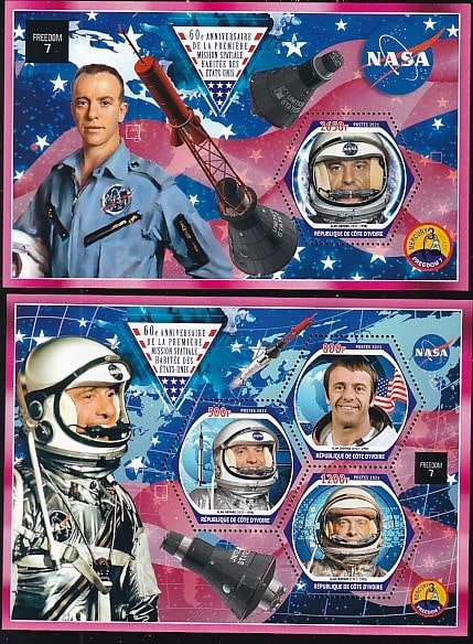Кот дИвуар 2021 год. 60-летие пилотируемой космической миссии США, блок + малый лист
