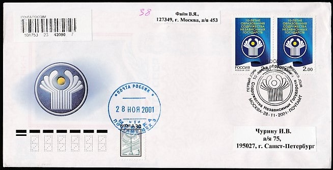 КПД. 10 лет образованию СНГ, 28.11.2001 год, Москва, почтамт