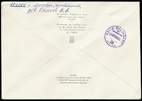 КПД. 100 лет со дня рождения скульптора В.И. Мухиной, 15.06.1989 год, Москва, почтамт, заказное, прошёл почту