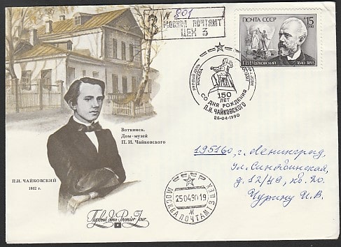 КПД. 150 лет со дня рождения композитора П.И. Чайковского, 25.04.1990 год, Москва, почтамт