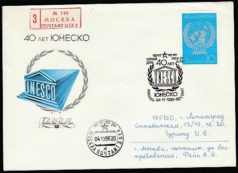 КПД. 40 лет ЮНЕСКО, 04.11.1986 год, Москва, почтамт