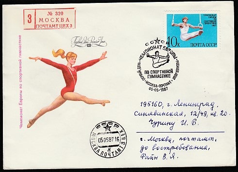 КПД. Чемпионат Европы по спортивной гимнастике, 05.05.1987 год, Москва, почтамт, прошёл почту