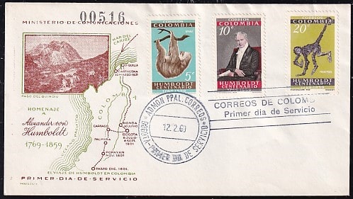 КПД Колумбии Александр фон Гумбольдт, гашение 12.02.1969 год