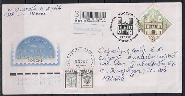 КПД. Лютеранская церковь святого Петра, 12.07.2001 год, Санкт-Петербург почтамт, заказное, прошел почту