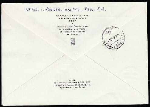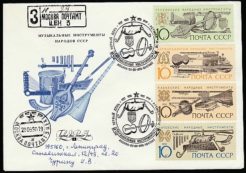 КПД. Музыкальные инструменты народов СССР, 20.09.1990 год, Москва, почтамт, заказное, прошёл почту