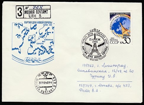 КПД. Парижская хартия для новой Европы, 31.12.1990 год, Москва, почтамт, заказное, прошёл почту