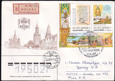 КПД со СГ "850 лет Москве", 22.05.1997 год, Москва, прошел почту