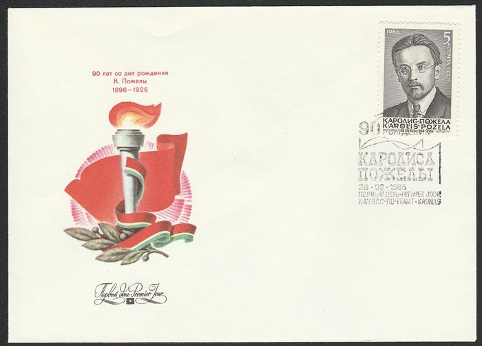 КПД со спецгашением от 28.02.1986 г. 90 лет со дня рождения К. Пожелы.