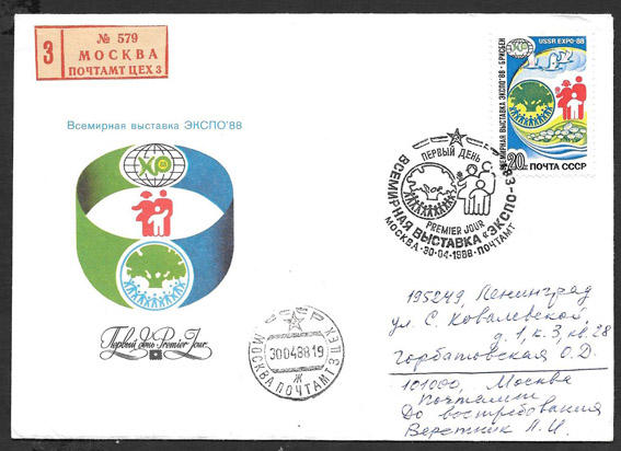 КПД со спецгашением - Всемирная выставка "Экспо-88" 30.04.1988 г. Прошел почту