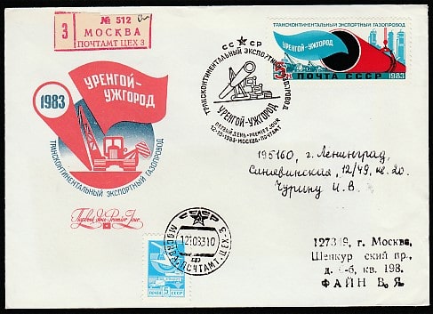 КПД. Трансконтинентальный экспортный газопровод Уренгой - Ужгород, 12.10.1983 год, Москва, почтамт, прошёл почту