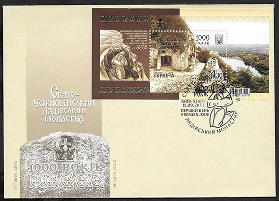 КПД Укарина со спецгашением - 1000 лет Лядовский Усекновенский скальный мужской монастыр, 2013 год