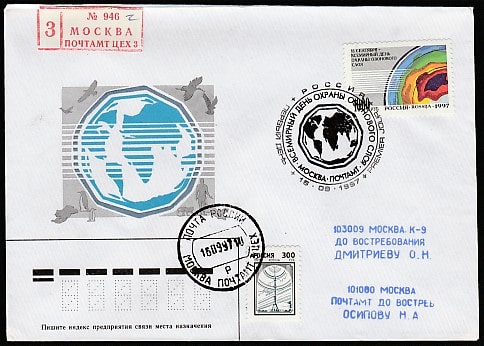 КПД. Всемирный день охраны озонового слоя, 16.09.1997 год, Москва, почтамт, заказное, прошёл почту