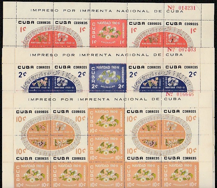Куба 1960 год. Рождество, 3 листа.