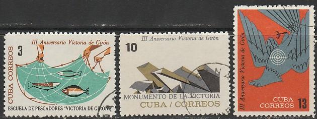 Куба 1964 год. III Годовщина победы в заливе "Свиней", 3 гашёные марки