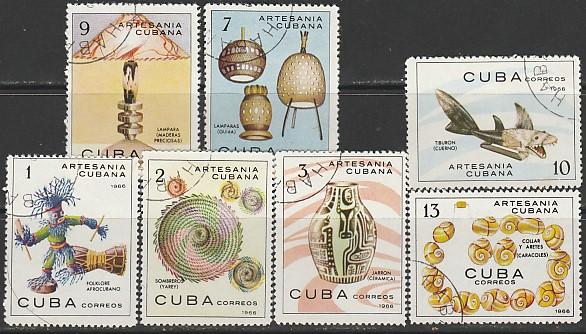 Куба 1966 год. Народные промыслы. 7 гашёных марок