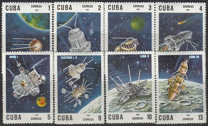 Куба 1967 год. 10 лет запуску первого спутника. 8 марок