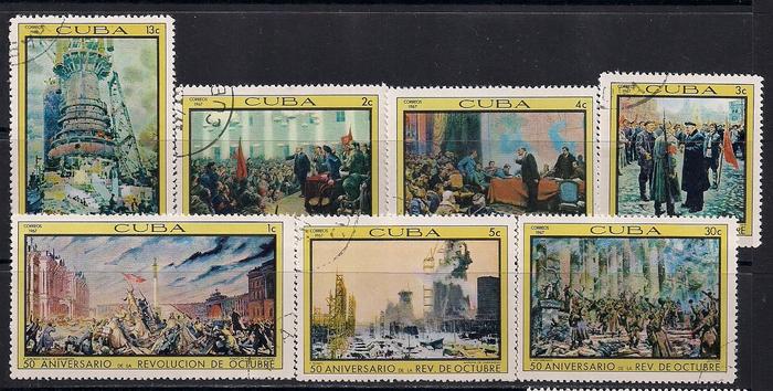Куба 1967 год. 50 лет Октябрьской революции. Живопись. 7 гашеных марок