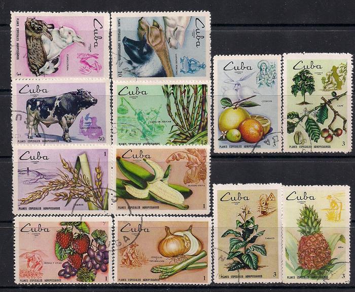 Куба 1969 год. Земледелие и животноводство. 12 гашеных марок