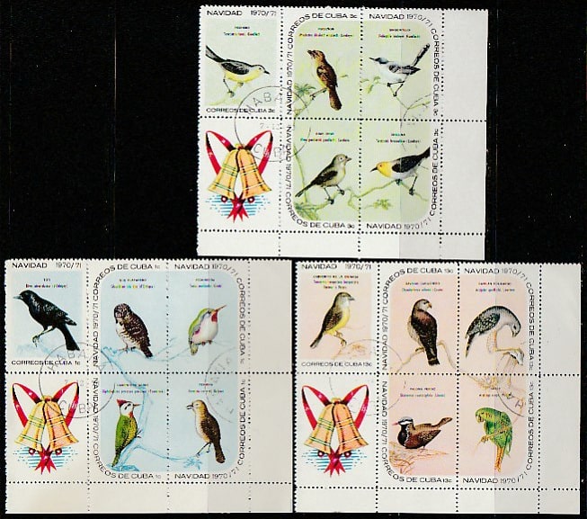 Куба 1970 год. Рождество. Птицы, 15 марок, 3 сцепки (гашёные)