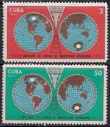 Куба 1971 год. 10 лет вступлению страны в международную систему радиовещания. 2 марки
